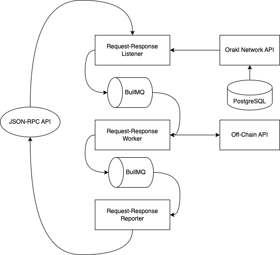 The **Orakl Network Request-Response** is one of the main Orakl Network solutions. It provides an access to off-chain data from on-chain smart contracts. Requests are emitted through on-chain event, captured by the **Orakl Network Request-Response Listener**, processed by the **Orakl Network Request-Response Worker** and eventually responded back to on-chain through the **Orakl Network Request-Response Reporter**.